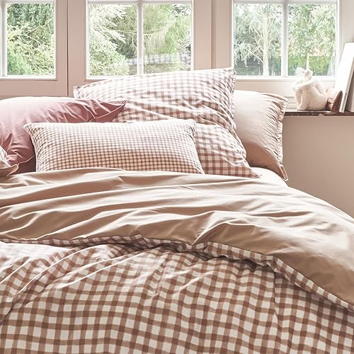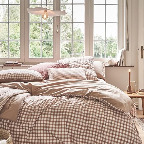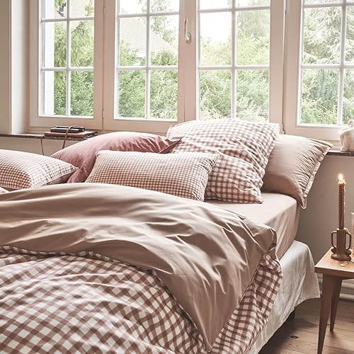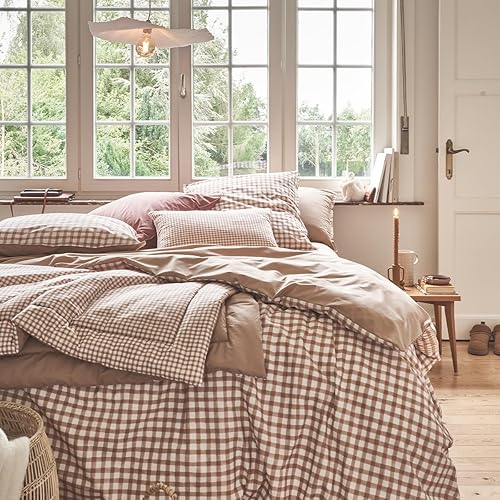 Housse de Couette imprimée en Percale de Coton, Made in France, Vichy, 140 x 200 cm, Essix, Beige Dune