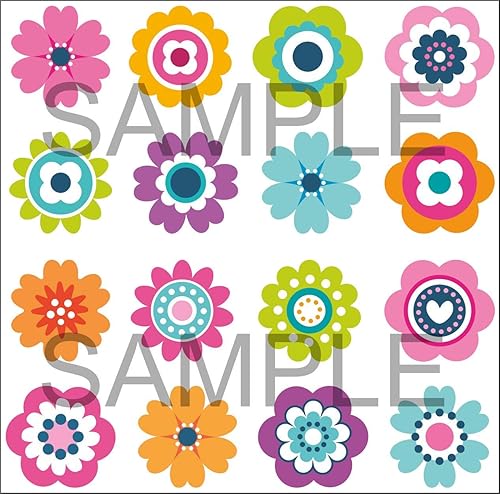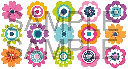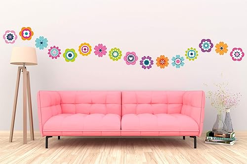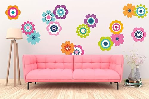 Autocollant mural rétro motif fleurs hippie années 60 70 - Medium - 75 x 54cm