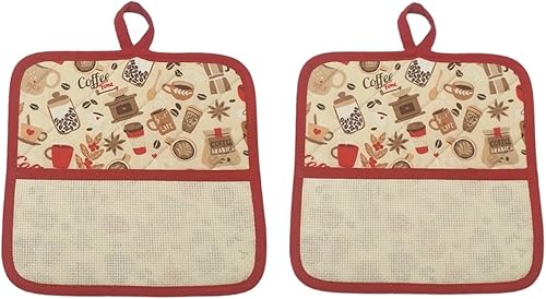 Lot de 2 maniques de cuisine fantaisie café avec toile Aïda 55 trous, 100 % coton emballées en Italie