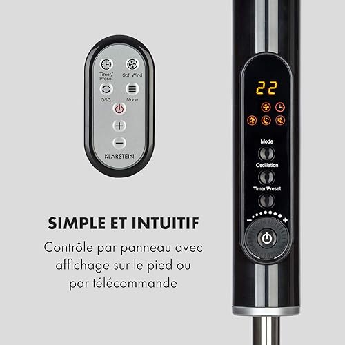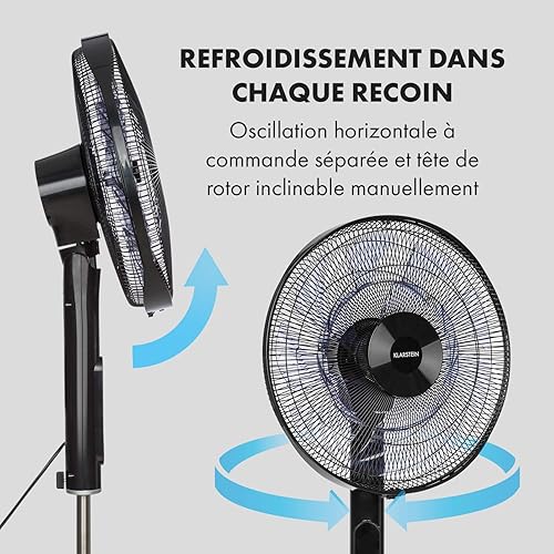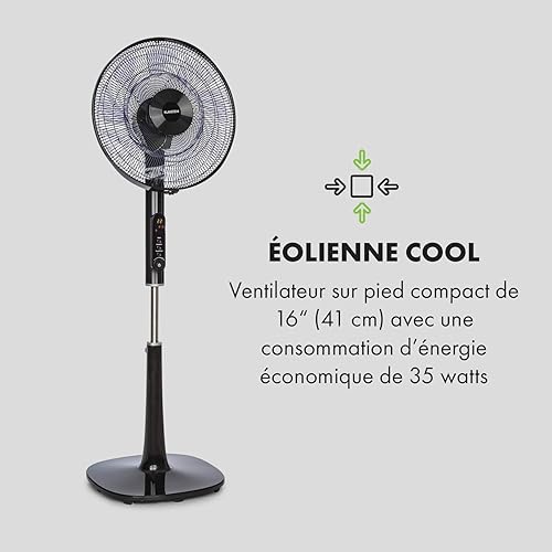 KLARSTEIN Sommerwind - Ventilateur sur Pied, Rotor 16' (41 cm), 35 W, jusqu'à 5 544 m³ / h, 58 DB Max, Oscillation à Commande séparée, 22 Niveaux de Vitesse, 4 Modes de Fonctionnement - Noir