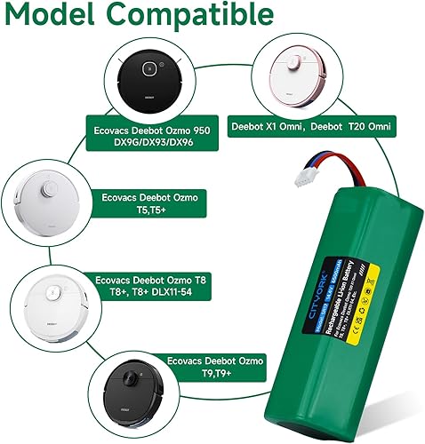 CITYORK Li-ION 6500 mAh 14,4 V Batterie de Rechange pour Ecovacs Deebot T20 T20e X1 X1e Omni, pour Deebot Ozmo 950/Ozmo 950 DX9G, pour Ecovacs Deebot T10, T9+ T9, T8+ T8 AIVI/Max Batterie