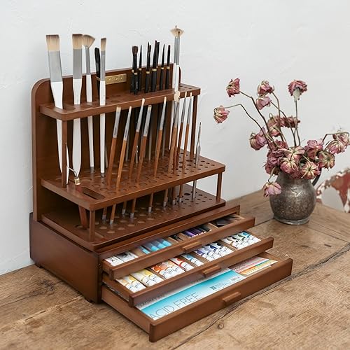 MEEDEN PRO Porte Pinceaux : Organisateur de Pinceaux en Bois à 2 Niveaux - Porte Pinceaux à Grande Capacité - Rangement pour Fournitures Artistiques pour Bureau, Arts et Artisanat