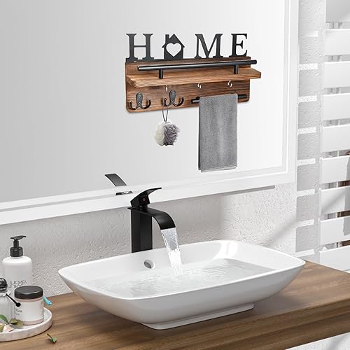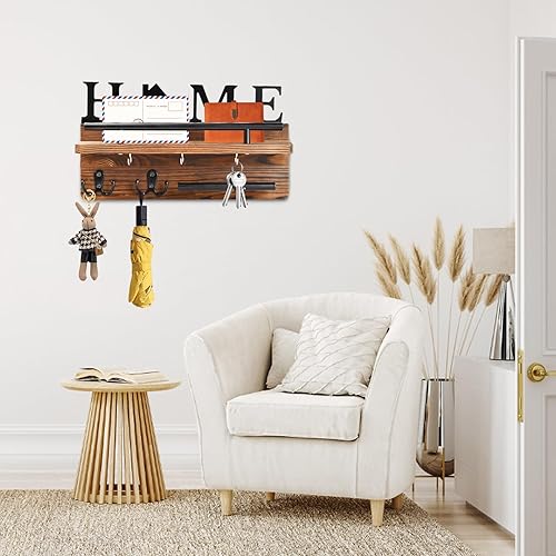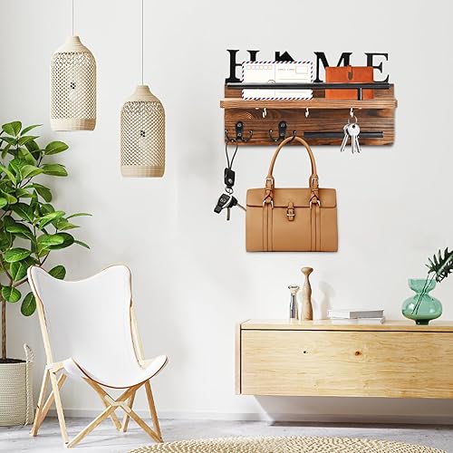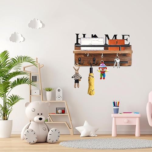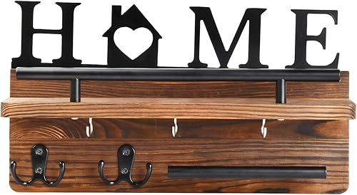 Dokeno Porte-Clés Mural en Bois, Plaque à Clés avec Étagère, Porte Clef Mural avec 5 Crochets, Accroche Clef Décoratif, Rangement Clef Mural, pour Entrée, Couloir, Salon