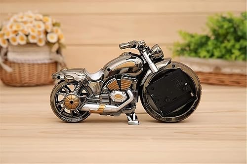 EKKONG Horloge a Poser Vintage Moto, Horloge en Forme de Moto, Décor de Bureau Modèle Moto, Réveil Radio Forme Moto Vintage, Cadeau Moto Créatif pour Enfants, Adultes, Fans de Moto