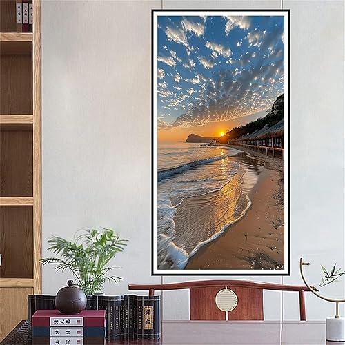 5D Diamond Painting Grand Format Coucher Soleil, Plage Broderie Diamant Kit Complet, Peinture Diamant Adulte, DIY Perle Diamant a Coller Painting, Strass Point de Croix Tableau Diamant 50x100cm S-3879