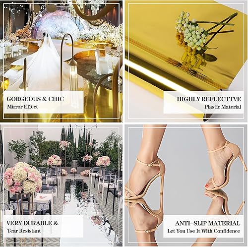 Rouleau de couloir double face en PVC métallisé argenté et doré pour événements glamour intérieur/extérieur (1,5 x 10 m)