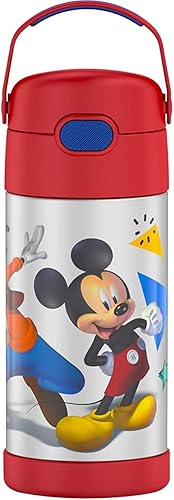 Thermos FUNTAINER Bouteille isotherme en acier inoxydable avec paille pour enfants, 355 ml, motif Pokémon