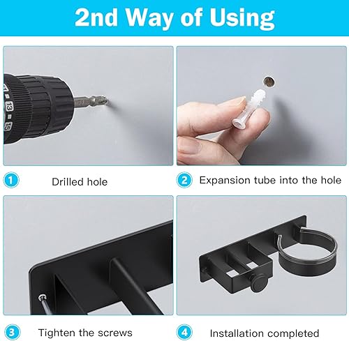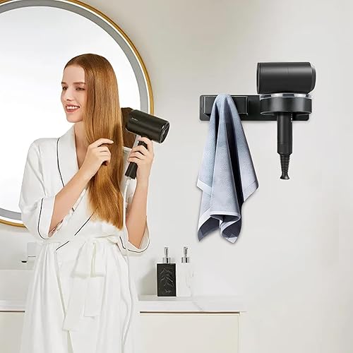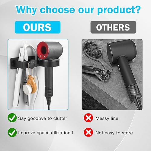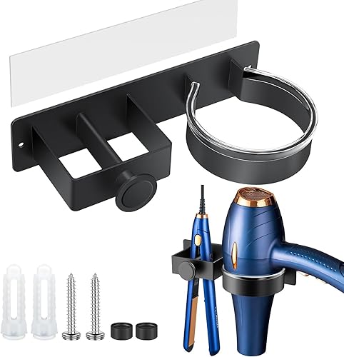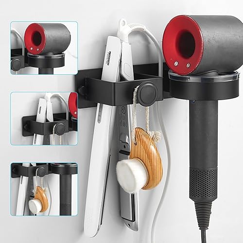 Support Sèche Cheveux sans Perçage, Support Seche Cheveux et Lisseur, Organisateur de Salle de Bain Multifonctionnel, Porte Outils pour Hôtel, Salle de Bain, Salon, Salon de Coiffure