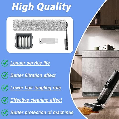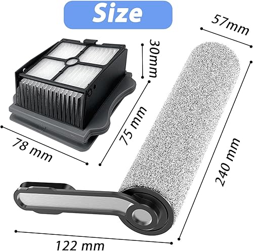 Cleptorize Kit d'accessoires Brosse pour Tineco Floor One S5/ S5 Pro/ S5 Pro 2/ S5 Extreme Aspirateur Eau et Poussière, Pièces de Rechange 2 Rouleaux de Brosse,2 Filtres,1 Brosse de Nettoyage