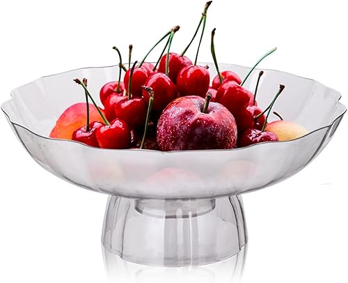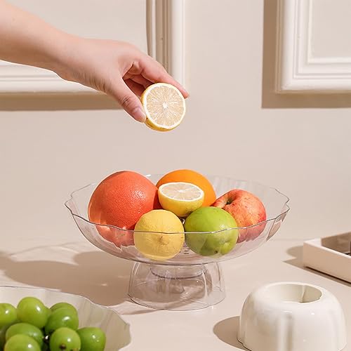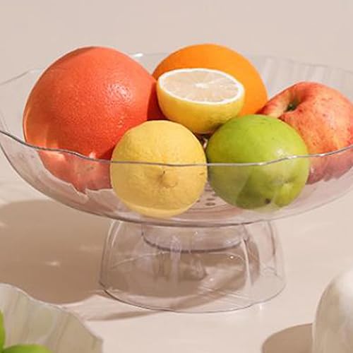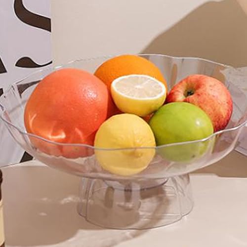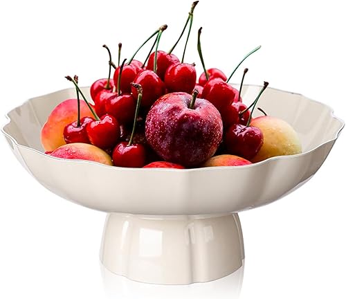 Bol à Fruits sur Pieds, 25.6×10.5cm Bol à Fruits sur Pied Décoré en Plastiques pour Comptoir de Cuisine, Présentoir à Desserts pour Collations, Noix, Bonbons (Crème)