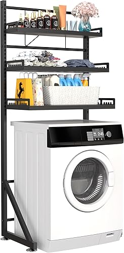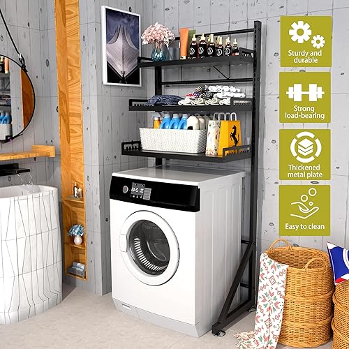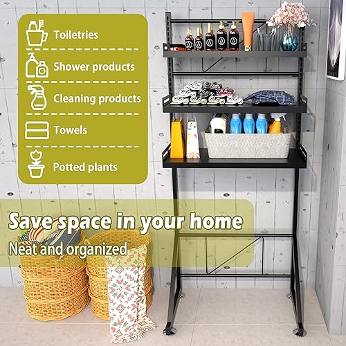 Supfirm Étagère de rangement à 3 niveaux réglables en hauteur pour machine à laver, grande étagère de rangement pour salle de bain pour économiser de l'espace (noir)