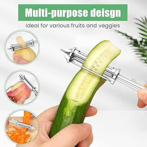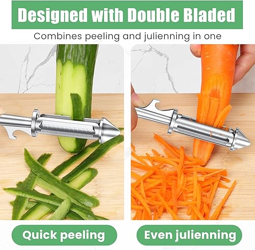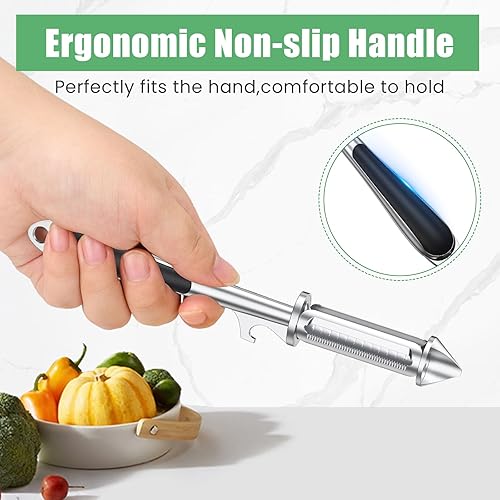 Alyvisun 3 en 1 Eplucheur/Julienne/Ouvre-bouteille, Alliage de Zinc, Éplucheur de Pommes de Terre avec Poignée Antidérapante, Éplucheur Universel pour Divers Fruits et Légumes