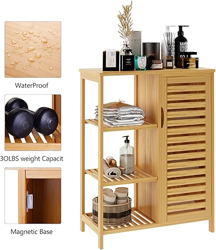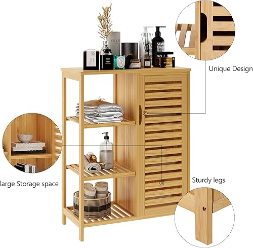 soges Étagères de Rangement en Bambou à 4 Niveaux avec Armoire de Rangement sur Pied Support pour Four à Micro-Ondes de Cuisine, Salon ou Salle de Bain