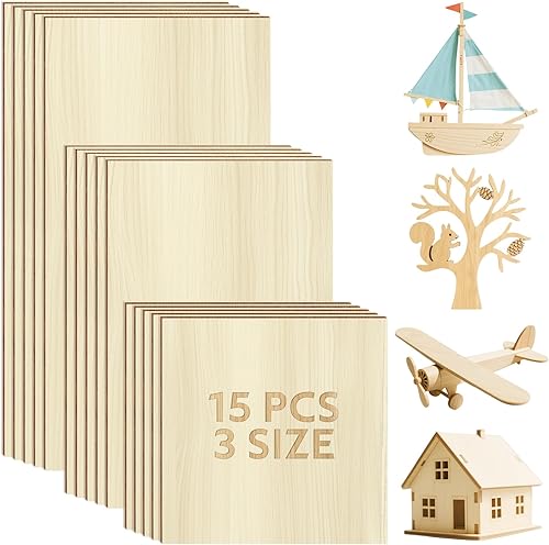 Realure 15 Contreplaqué Bois Pour Le Bricolage, 100 X 100 mm, 100 X 150 mm, 100 X 200 mm, Plaque Bois Pour Le Bricolage, Contreplaqué De Qualité 1.5 mm Pour Gravure Laser, Pour Modelisme
