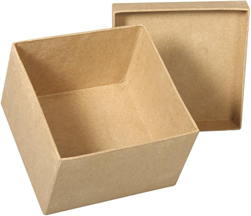 Rayher 71753000 boîte de rangement carrée, papier mâché FSC Recycled 100% nature