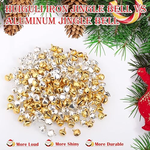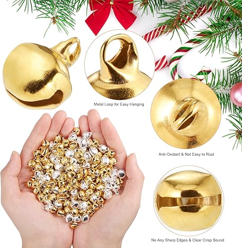 Huiguli 200 PCS Petites Clochettes, Grelots Clochettes pour Décoration de Noël, Noël Jingle Bells en Métal, DIY Artisanat, Collier d’Animaux de Compagnie