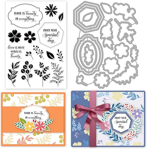 INFUNLY Lot de tampons et matrices de découpe en silicone pour la fabrication de cartes, les mots, les pochoirs de découpe en forme de feuille pour le bricolage, le papier décoratif, le gaufrage