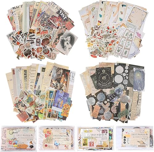 800 Pièces Autocollant Scrapbooking Vintage, Teklemon 4 Ensemble Papier Craft Vintage et Autocollants Washi Paper Stickers, Autocollants Décoratifs Rétro pour Scrapbook, Album Photo DIY, Journaling