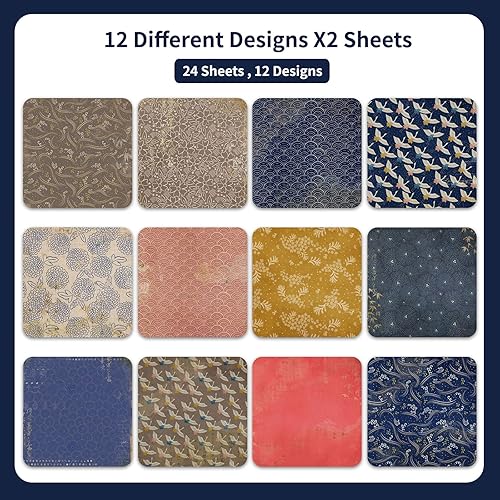 Papier de scrapbooking vintage, 24 feuilles/12 motifs de papier pour scrapbooking 15,2 x 15,2 cm de style chinois japonais pour loisirs créatifs (1 paquet de style chinois + 1 paquet de style japonais