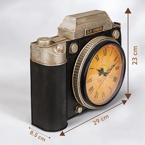 MIJOMA Armoire à clés rétro avec horloge - Design caméra vintage - En métal - Environ 23 x 8,5 x 29 cm - Décoration murale au look rétro
