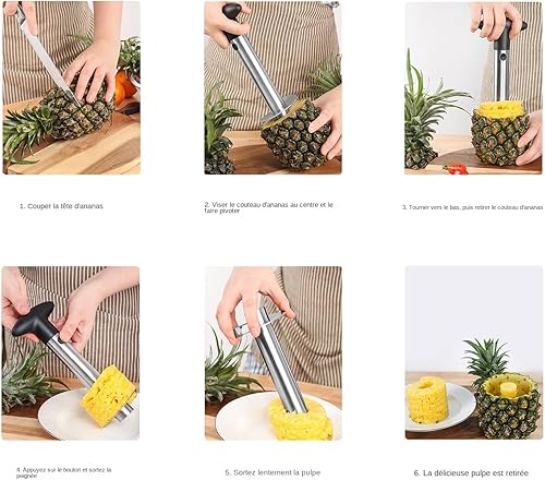 Évideur D'ananas Super Rapide et Facile en Acier Inoxydable, Outil de Retrait de Noyau D'ananas pour la Cuisine à Domicile, Enleveur de trognon d'ananas