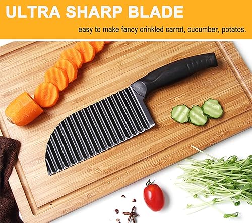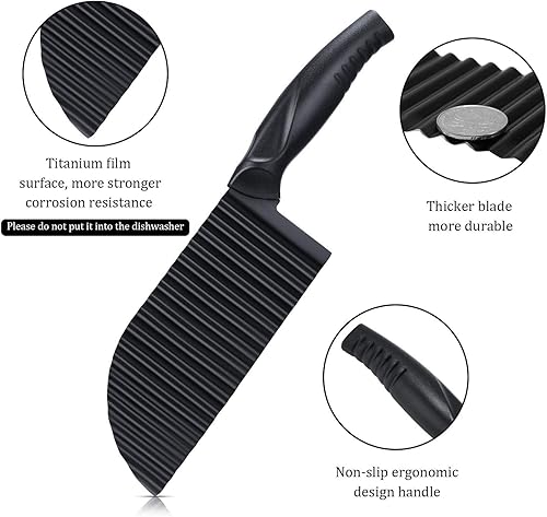 Yuannee Coupe-Pommes de Terre Ondulé,Trancheuse à Frites Couteau à Vagues Couteau Ondulé en Acier Inoxydable Lame Vague avec Poignée Antidérapante pour Frites Pommes de Terre Fruits