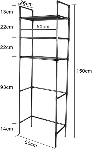XANNI Étagère de Rangement à 3 Niveaux pour Machine à Laver, Support de Rangement, Etagère de Machine à Laver Salle de Bain Buanderie Intérieur, 150 * 70 * 26 cm, Noir (50 * 26 * 150cm)
