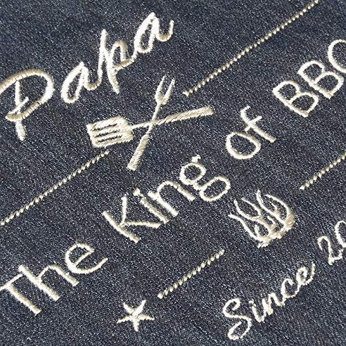 Tablier de barbecue en jean's denim personnalisé et brodé avec un prénom, un texte, cadeau anniversaire, noel, fete des peres, fete des meres, top qualité