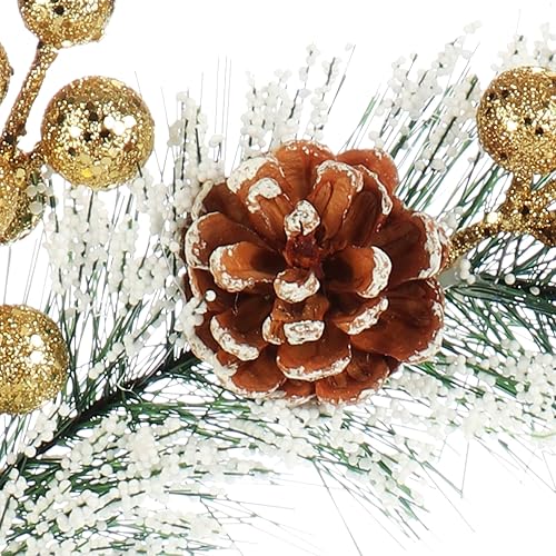 COM-FOUR® Couronne de Porte de Noël - Couronne de l'Avent avec Aiguilles de pin et Boules de Sapin de Noël - Couronne décorative Ø Environ 25 cm - décoration de Noël (Vert/Blanc/Couleur Or)