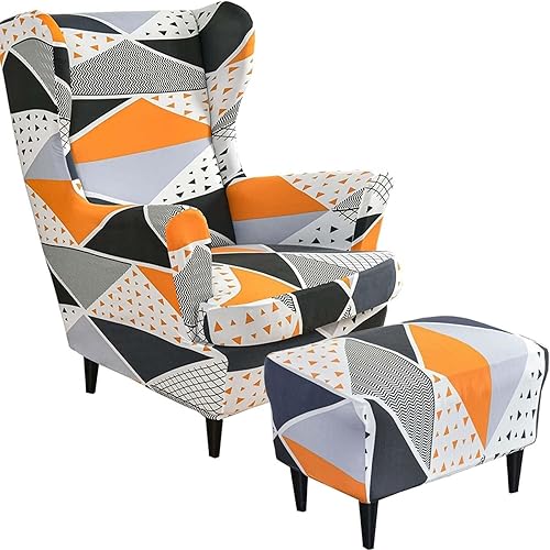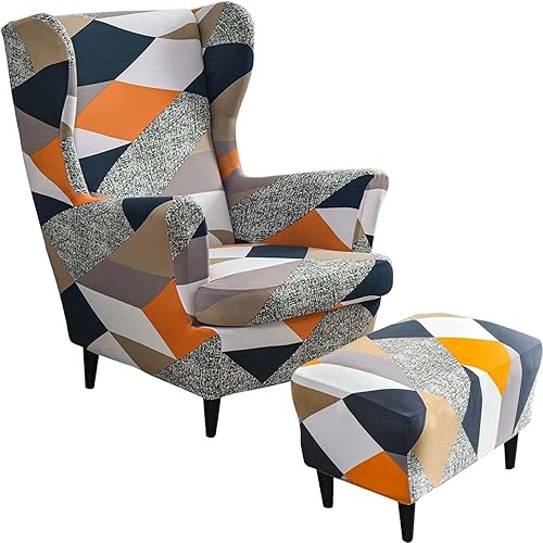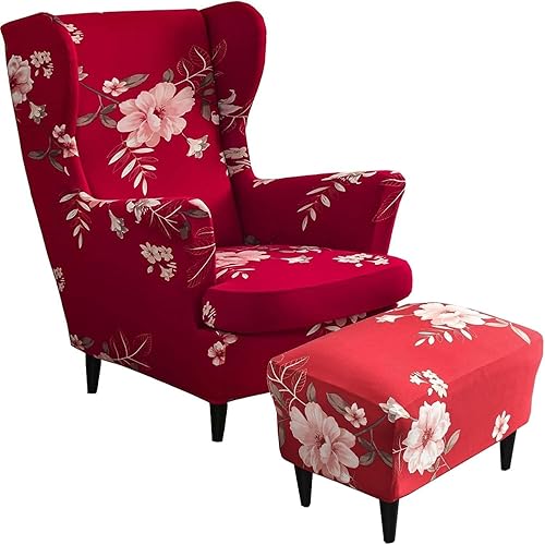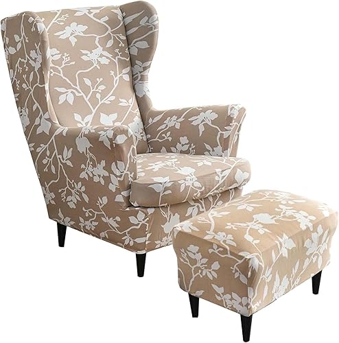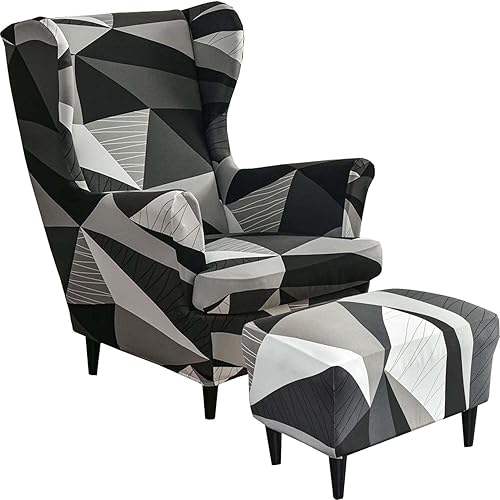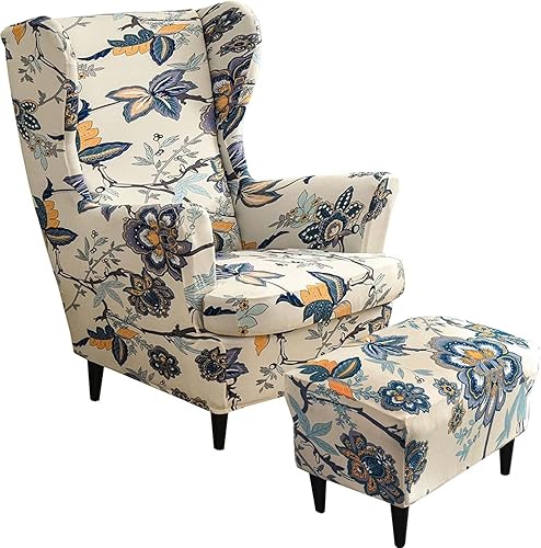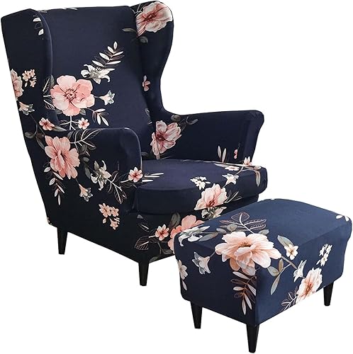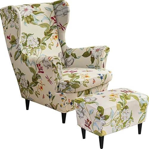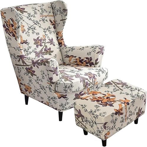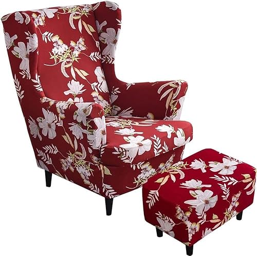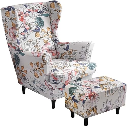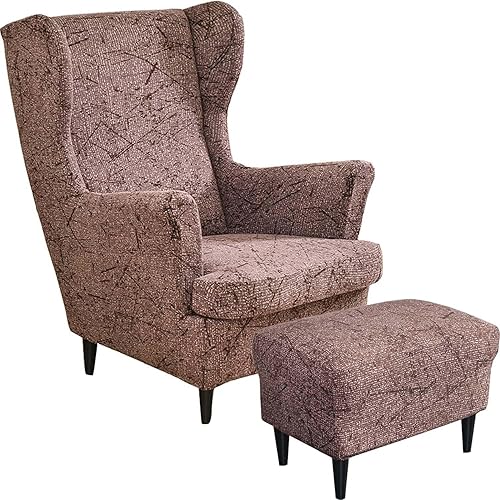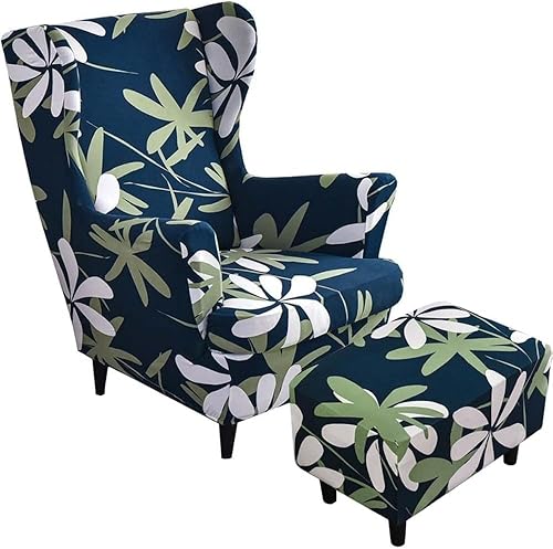 Aulande Lot de 2 housses de fauteuil à oreilles et de repose-pieds extensibles avec housse de protection pour ottomane (# 24)