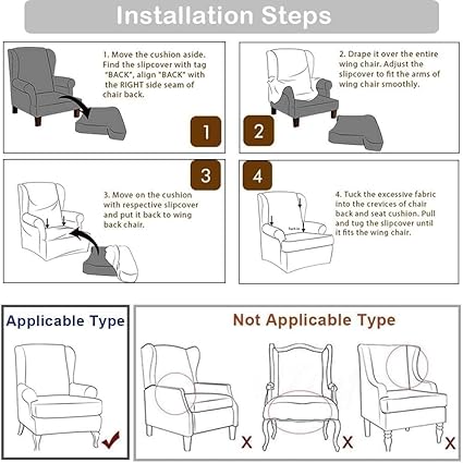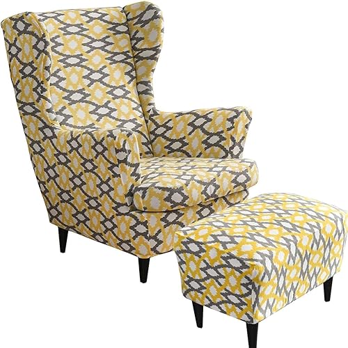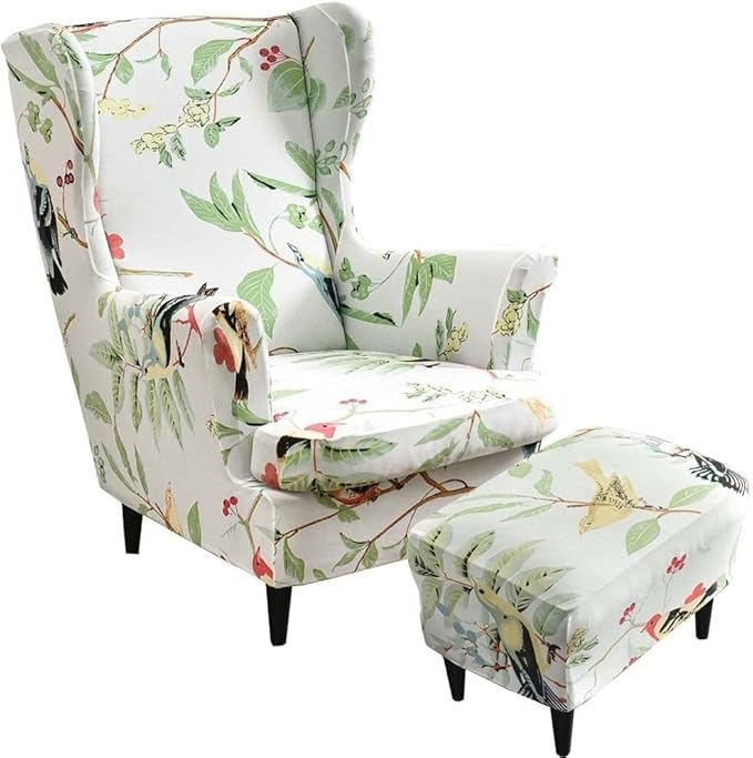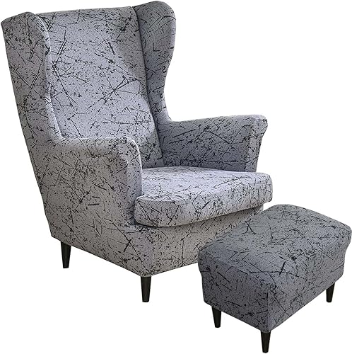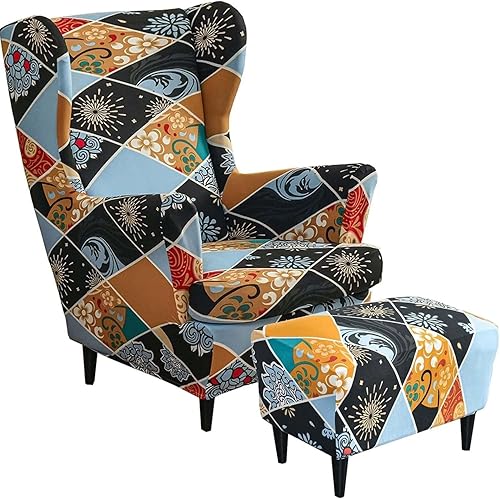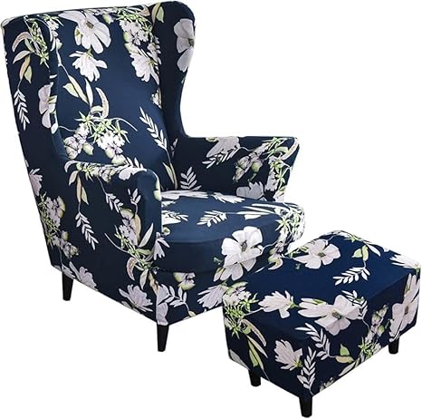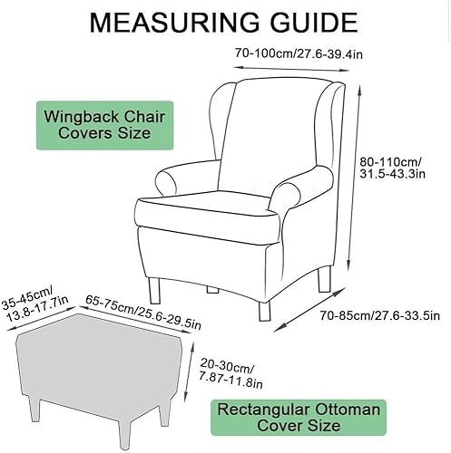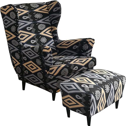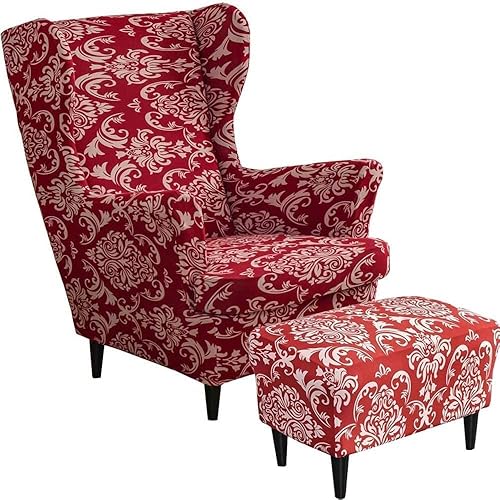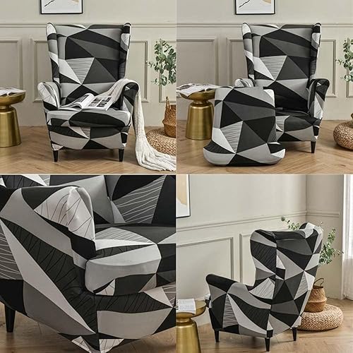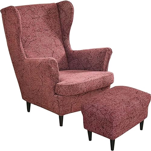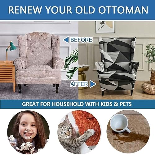 Aulande Lot de 2 housses de fauteuil à oreilles et de repose-pieds extensibles avec housse de protection pour ottomane (# 24)