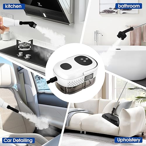 Nettoyeur Vapeur Portable 2500 W, 1100 Ml, Nettoyeur Vapeur Haute Pression Avec 3 TêTes De Brosse, Nettoyeur Vapeur Manuel Multifonction Pour Meubles De Cuisine, Salle De Bain, Voiture (Blanc)