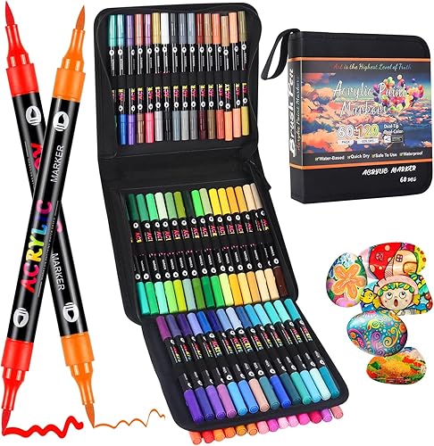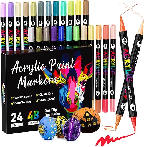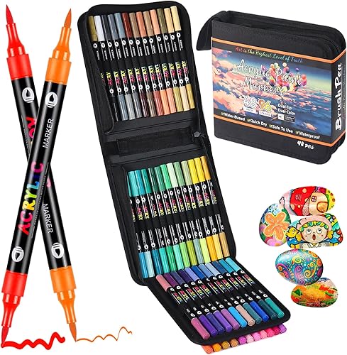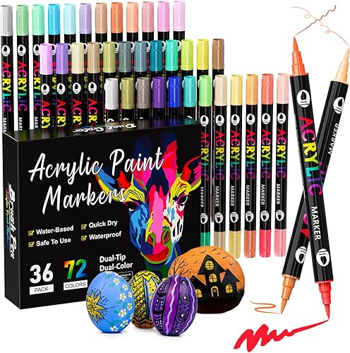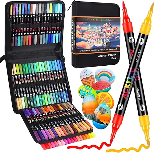 Patamiyar Feutre Acrylique, 72 Couleurs Marqueurs Peinture Acrylique pour Roche, Marqueur Peinture Acrylique Permanent Peintures Acryliques pour Pierres Bois Verre Toile Papier Céramique DIY