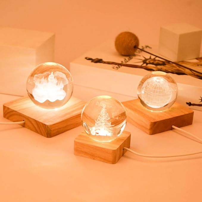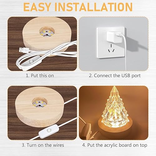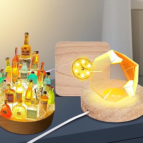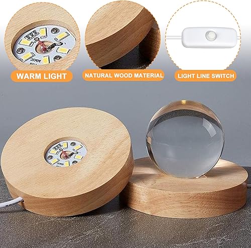 Forhome Base LED, 6 Pièces Base Lumineuse LED USB, Base d'affichage Lumineuse Ronde, Base Lumineuse LED en Bois, Base Lumineuse avec Câble USB pour Boule de Cristal, Acrylique