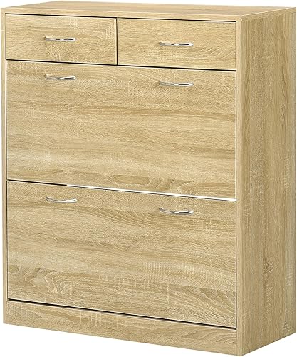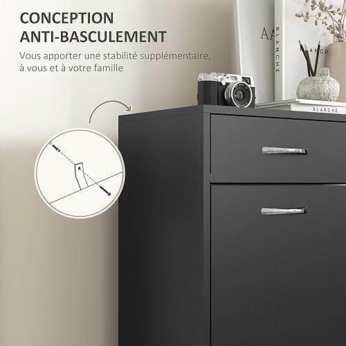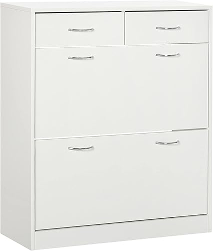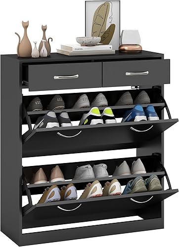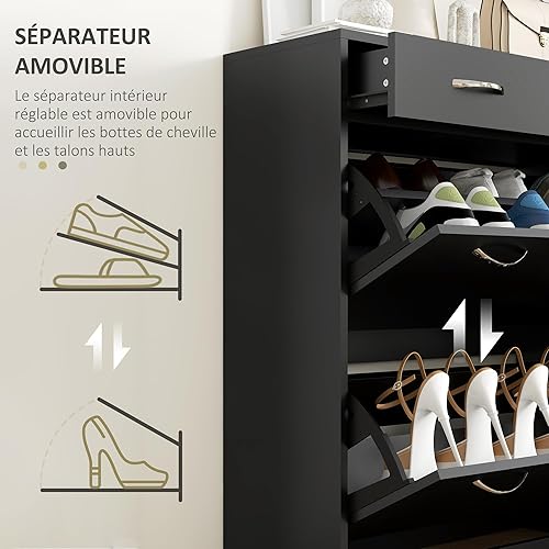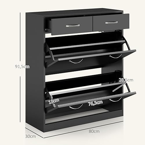 HOMCOM Meuble à Chaussures Armoire à Chaussures - 2 tiroirs et 2 Portes abattantes avec étagère réglable - 80 x 30 x 91,5 cm - poignées en Aluminium, Noir