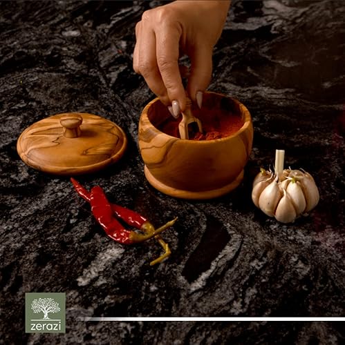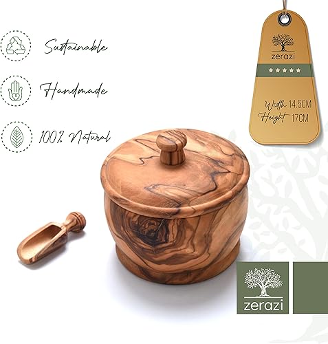 Zerazi | Sucriers avec doseur en Bois d’Olivier – Écologique et Hygiénique, Entièrement Fabriqué À La Main (15 x 17 cm)