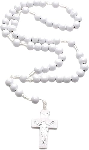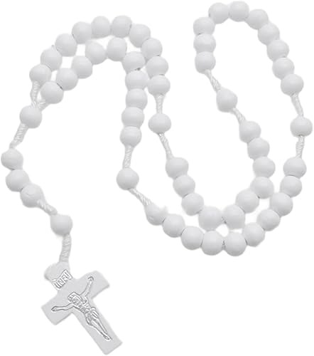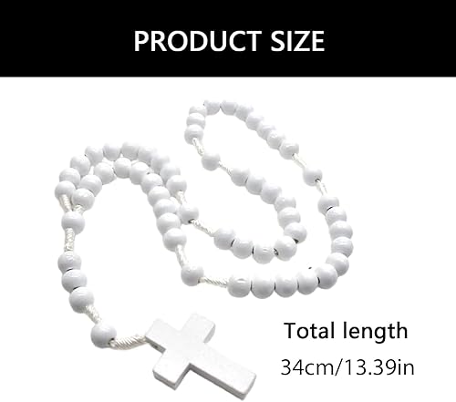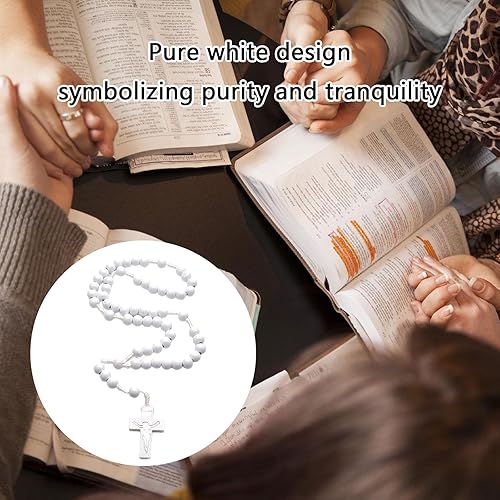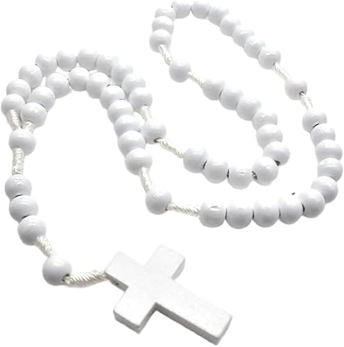 Hrtyvhin Chapelet en bois blanc avec croix traditionnelle pour maison d'église extérieur esthétique grains de bois