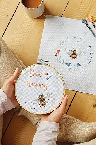 DMC - Duo Kit de point de croix - Bee Happy | Kit complet : Toile, Tambour, Fils à broder, aiguille et insctructions complètes | Niveau intermédiaire