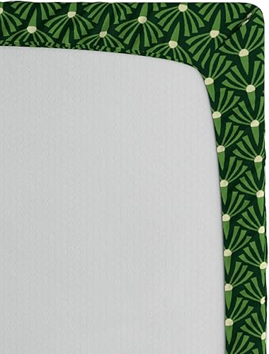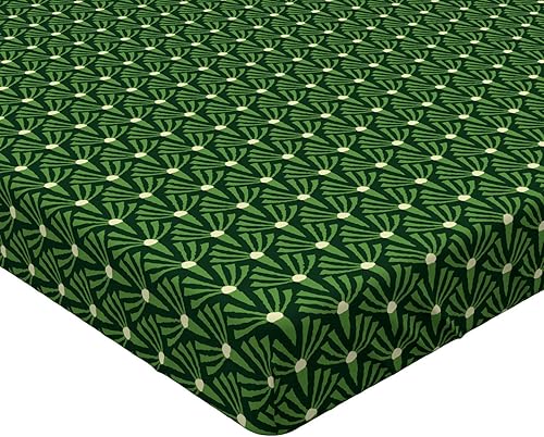 ABAKUHAUS Feuilles Drap-Housse, Motif Feuillage avec des Points, Pochette Élastique Tout Confort pour Literie en Tissu Décoratif, 140 x 200 cm, Vert et crème
