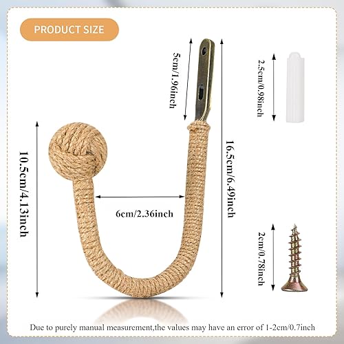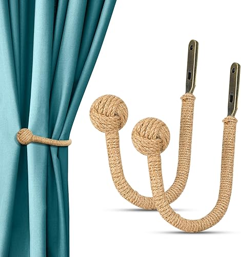 Lot de 2 embrasses de rideaux tissées à la main de style vintage en métal de qualité avec boucle de rideau en alliage de zinc