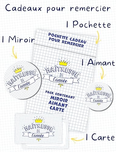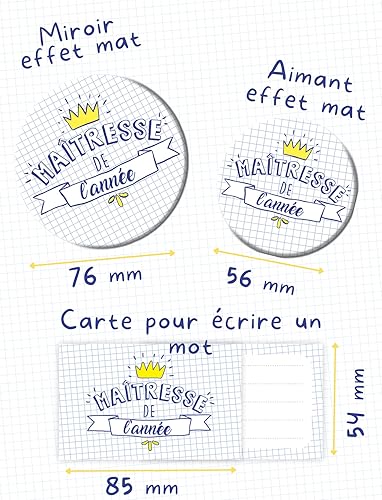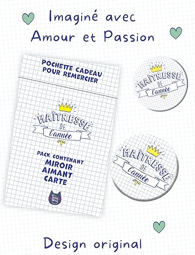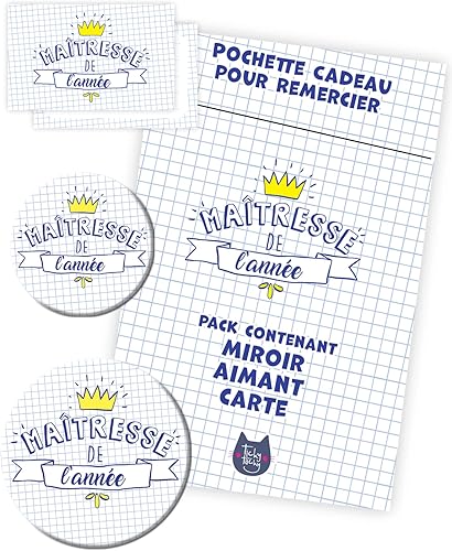 Ticky-Tacky Kit Cadeau Maîtresse Pack Carte + Miroir + Aimant Maîtresse de l'année Couronne | Cadeau pour la maîtresse