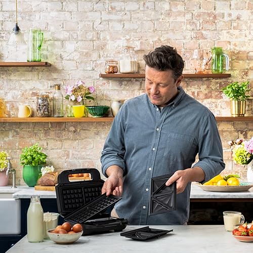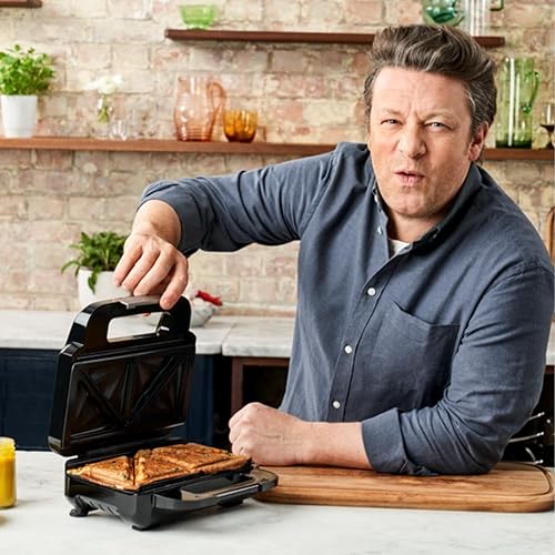 Tefal Jamie Oliver SW70J810 Appareil à croque-monsieur 2 en 1, plaques anti-adhésives, passe au lave-vaisselle, contrôle de la température et de fonctionnement, enrouleur de câble, acier inoxydable