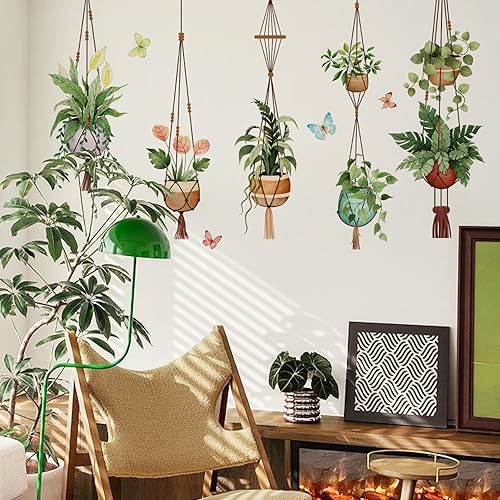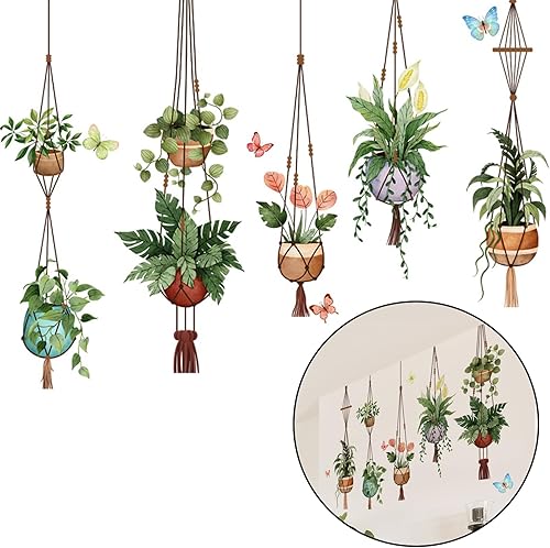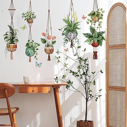 Autocollants Muraux de Plantes,Autocollant pour Fenêtre Plantes Papillon,Stickers Fenetre,Autocollant de Plantes Pot Vertes pour Fenêtre Décoration, Chambre et Cuisine,Non Adhésifs
