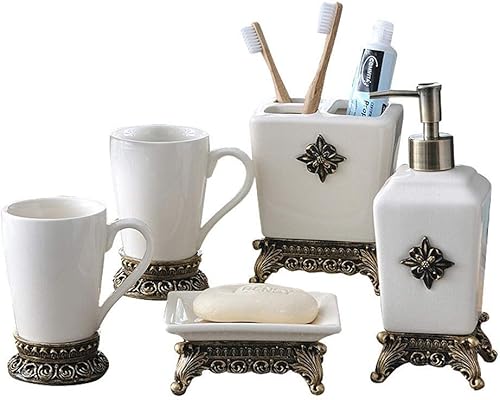 Ensembles D'accessoires De Salle De Bain en Céramique Vintage, Kit De Élégant 5 Pièces Vanité De Salle De Bain, Adapté À Chambre D'étude Salon L'hôtel