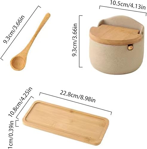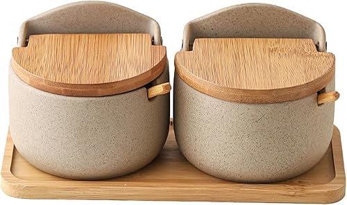 Récipient à sel avec couvercle - Plat à sel avec couvercle Sel en céramique | 2x Pot à sel en céramique avec couvercle de cuillère en bois | Boîte d'assaisonnement, pot de stockage d'assaisonnement de