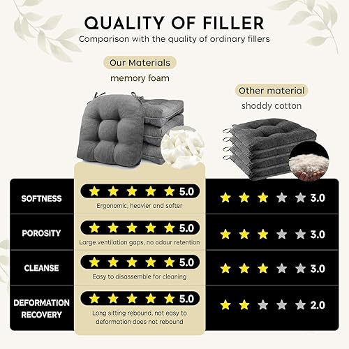 Lot de 4 coussins de chaise touffetés en mousse à mémoire de forme avec attaches et dos antidérapant pour salle à manger, 40 x 40 x 10 cm, Begie