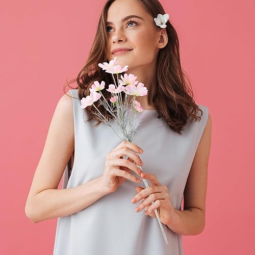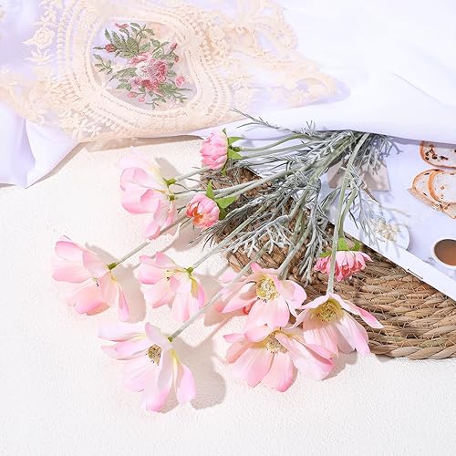 Lot de 2 plantes cosmos artificielles roses artificielles pour intérieur et extérieur, fleurs en tissu pour mariage, banquet, fête florale, maison, hôtel