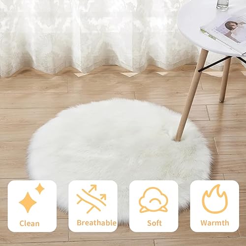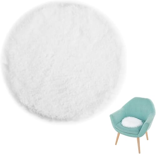 GXGM Coussin de Chaise en Fausse Fourure, Ø 30 cm - Blanc, 1 pièce