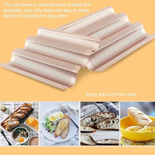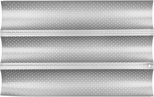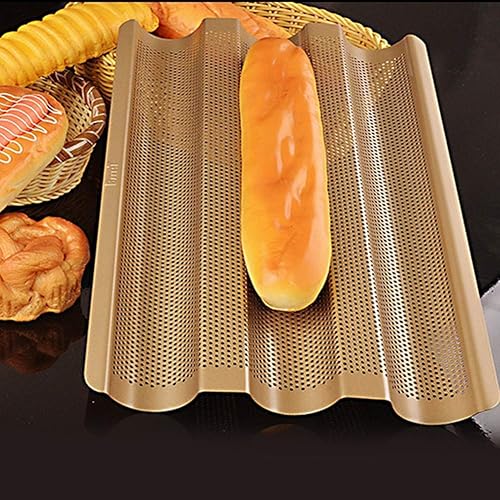 Fdit Plaque de Cuisson Pain Moule Poêle à Pain Français pour Cuisson Baguettes perforées Wave à Cake Bake Doré Ustensiles en 3 antiadhésif Baguette PanArgent