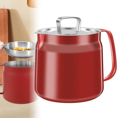 Récipient à graisse à bacon 2 en 1 avec passoire à mailles fines, pot de filtre à huile en acier inoxydable de 1,5 l avec couvercle à poignée, peut stocker l'huile de friture et la graisse de cuisson